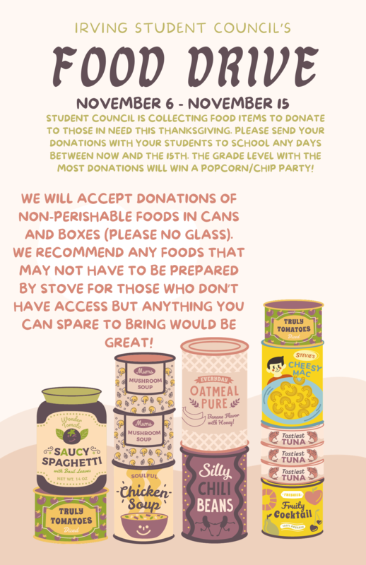 Irving Student Council's Food Drive